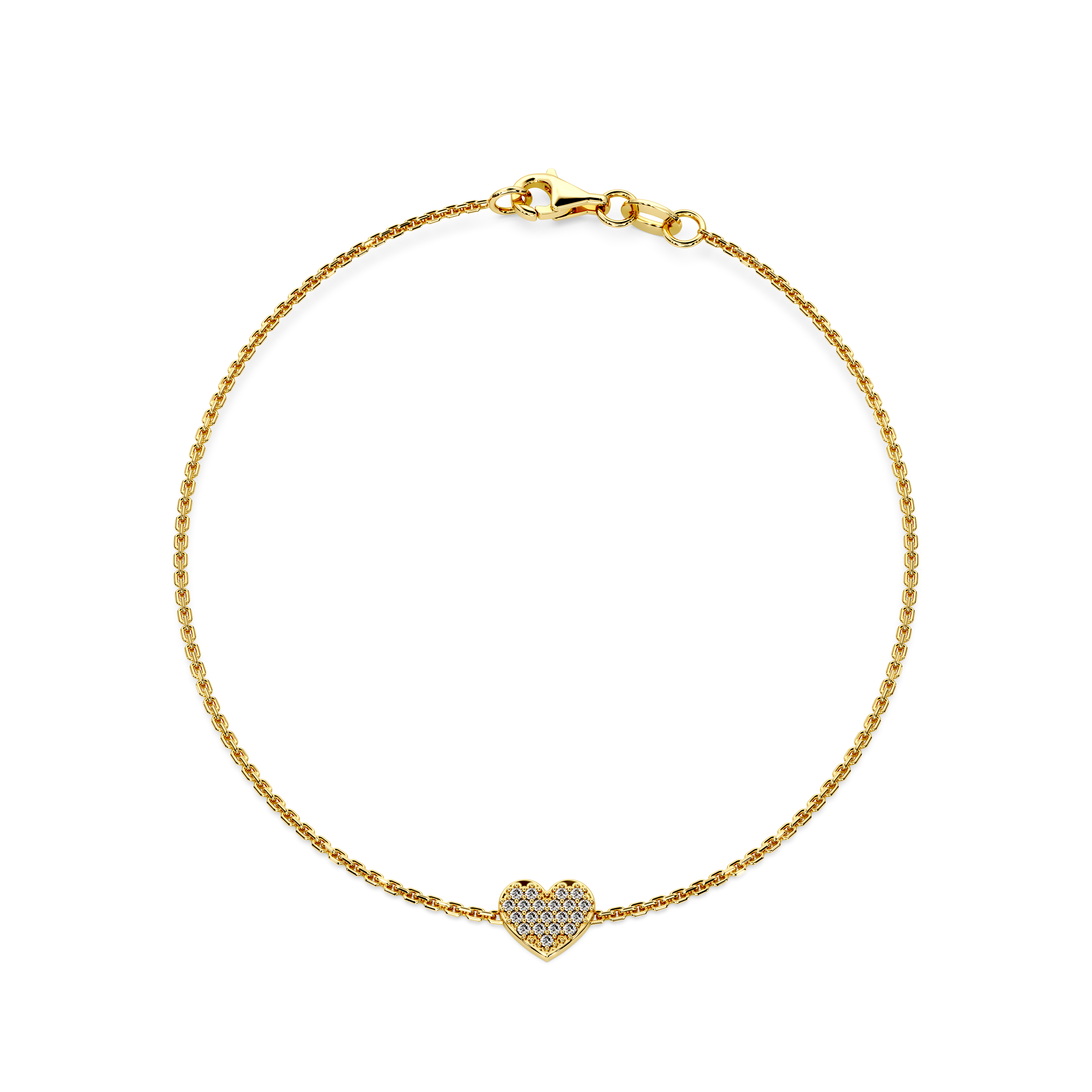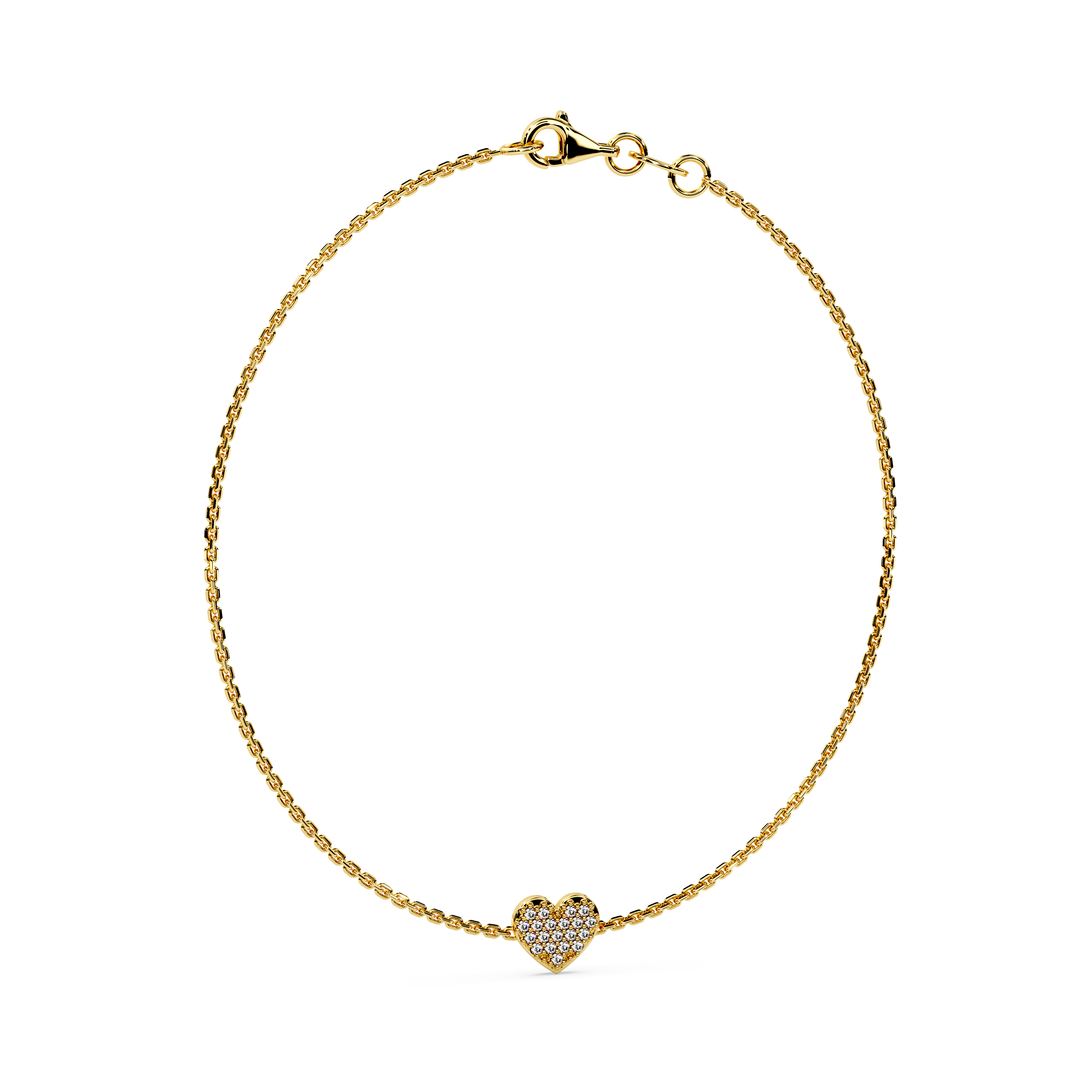 Elegant and timeless, this 14K gold bracelet features a delicate heart charm adorned with pavé-set natural diamonds. Crafted with VS DEF quality stones for brilliant sparkle, it’s the perfect piece to wear solo or layered with other bracelets for a chic, romantic look. Adjustable for comfort, it’s a refined essential in any jewelry collection.