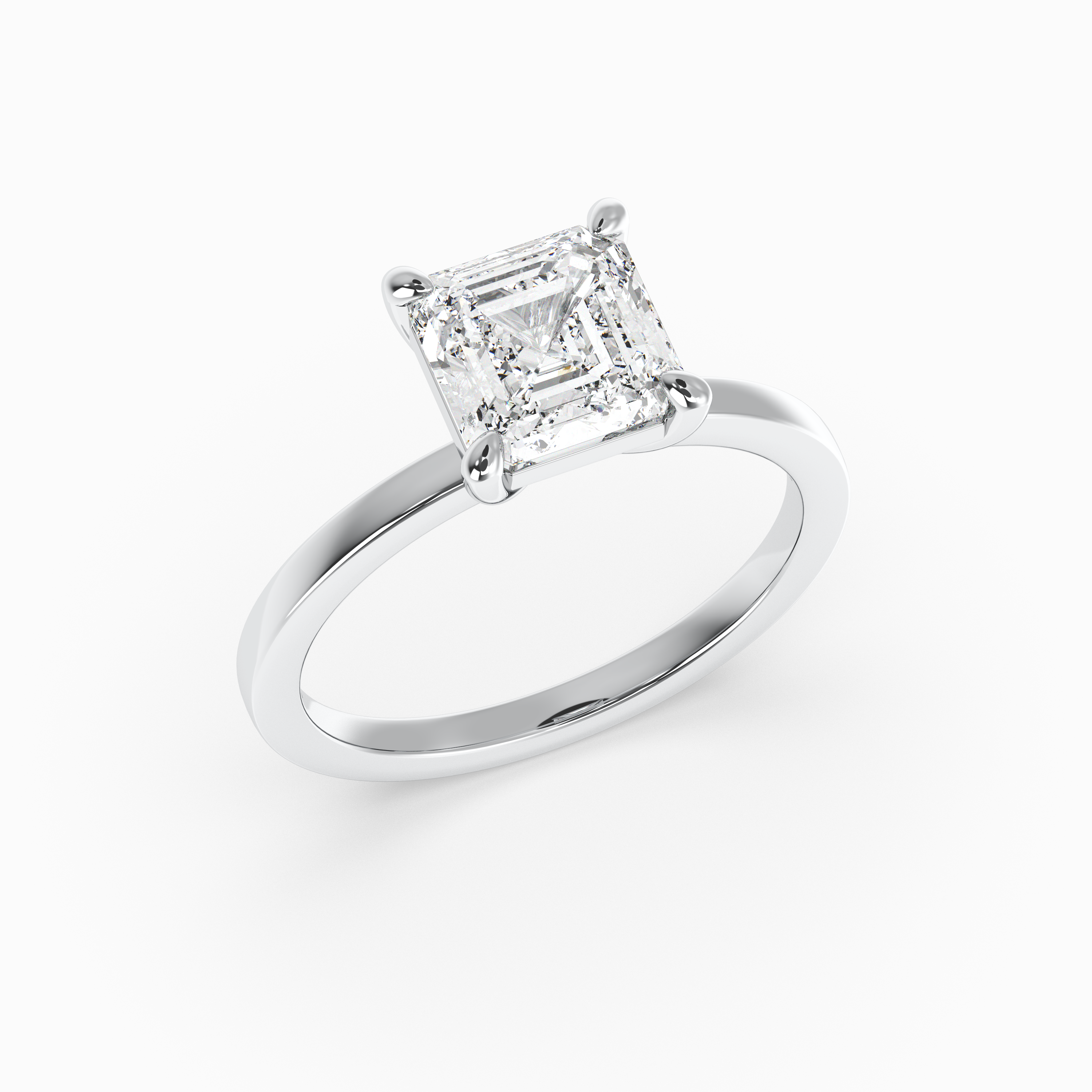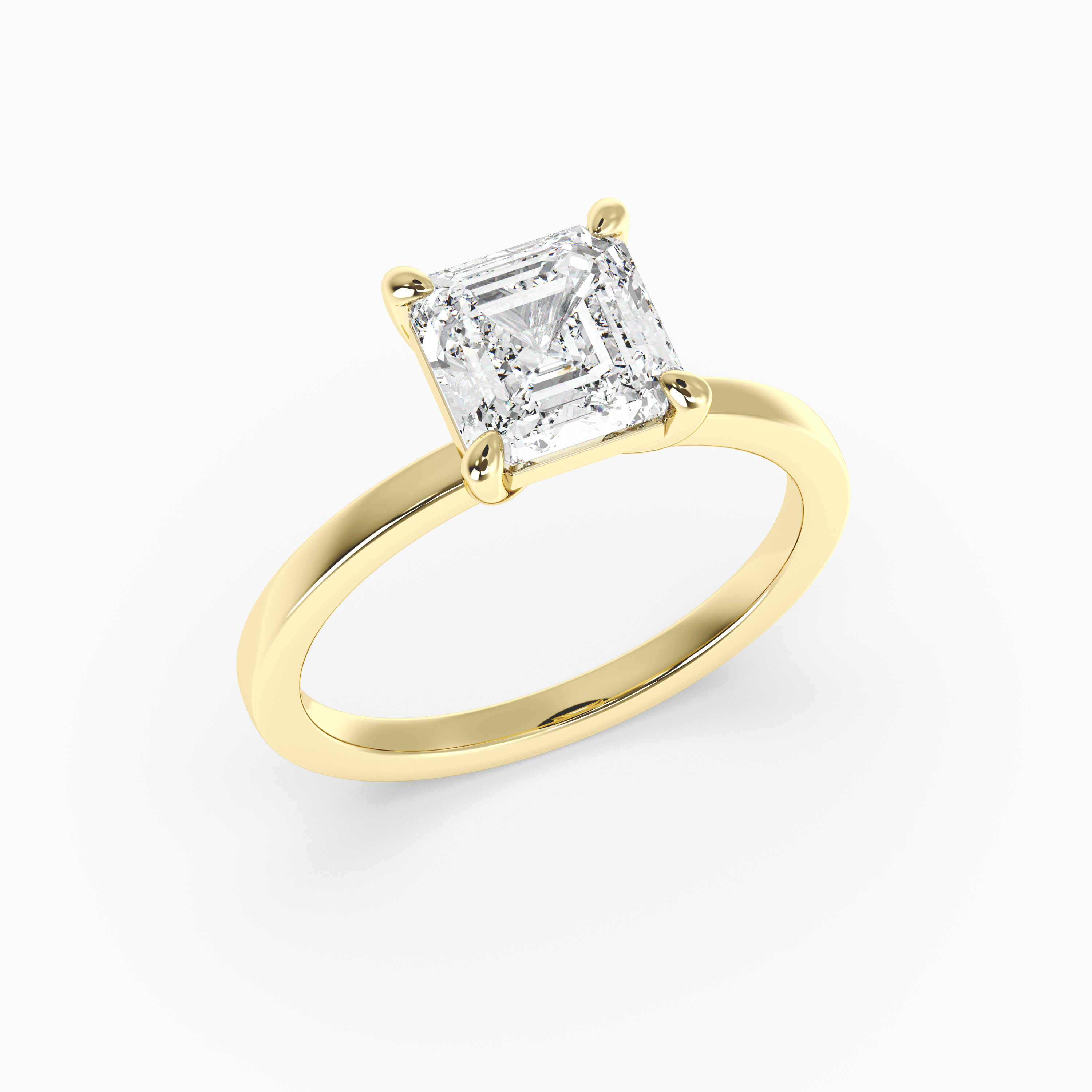 Asscher Cut Lab-Grown Diamond Solitaire Engagement Ring in 14K Gold – Classic Band
