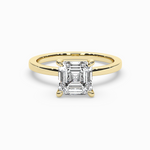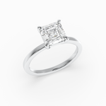 This elegant solitaire engagement ring features a brilliant Asscher Cut lab-grown center diamond set in a timeless four-prong setting, crafted in solid 14K gold for lasting beauty and everyday wear.