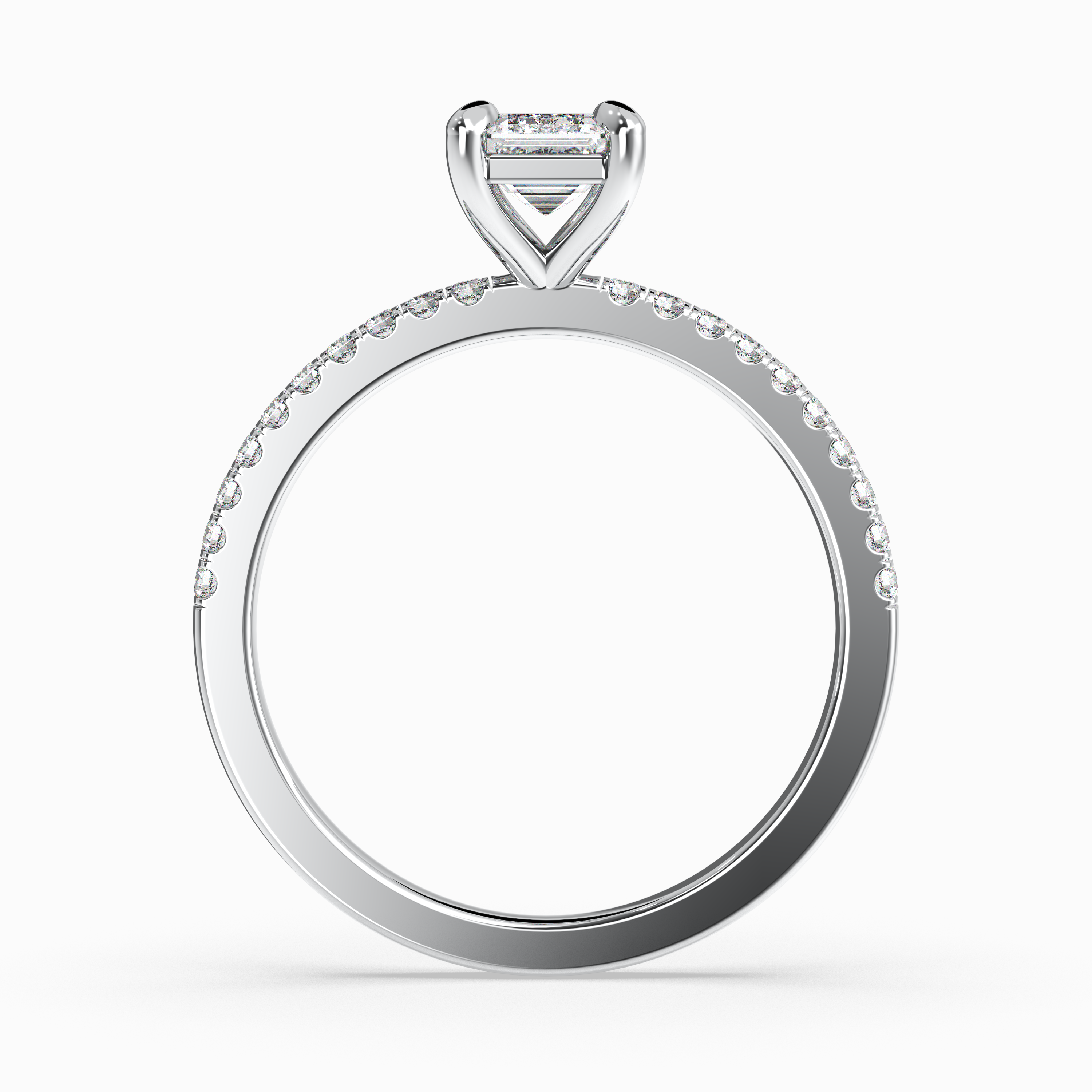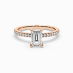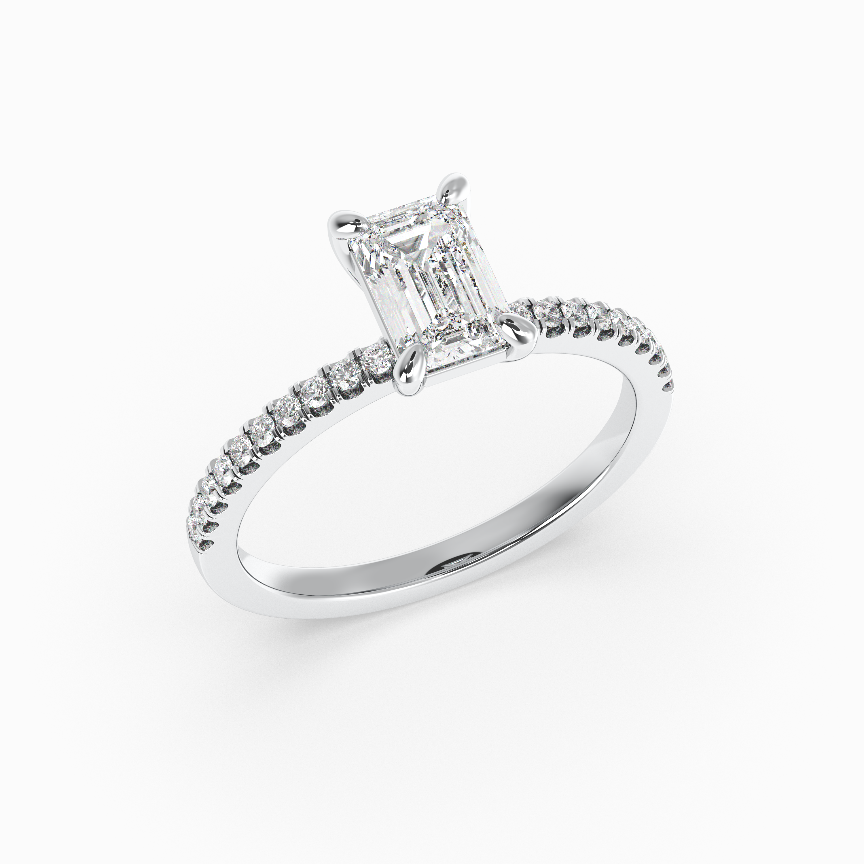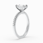 Emerald Cut Lab-Grown Diamond Solitaire Engagement Ring in 14K Gold – Pavé Band