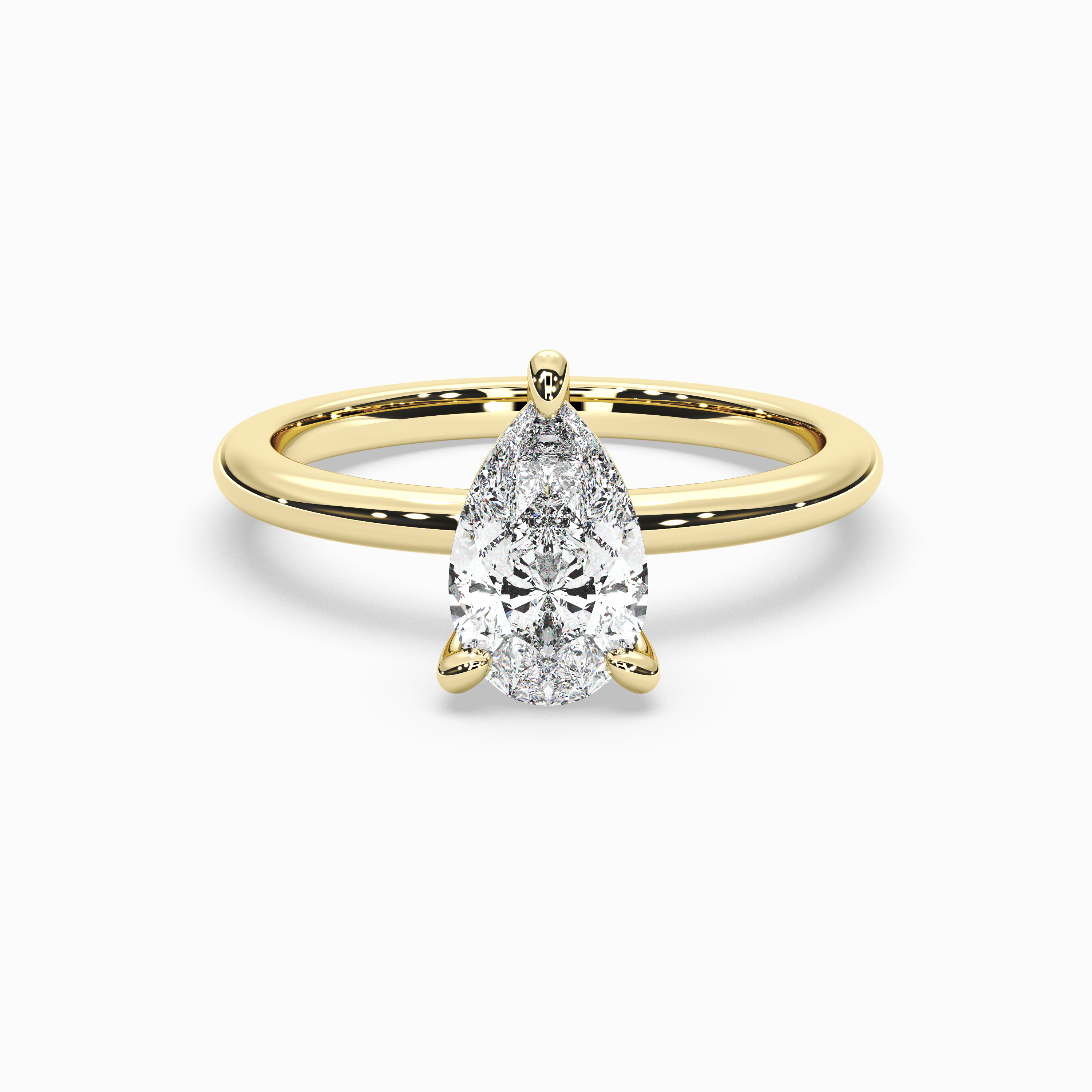 This elegant solitaire engagement ring features a brilliant Pear Shape lab-grown center diamond set in a timeless four-prong setting, crafted in solid 14K gold for lasting beauty and everyday wear.